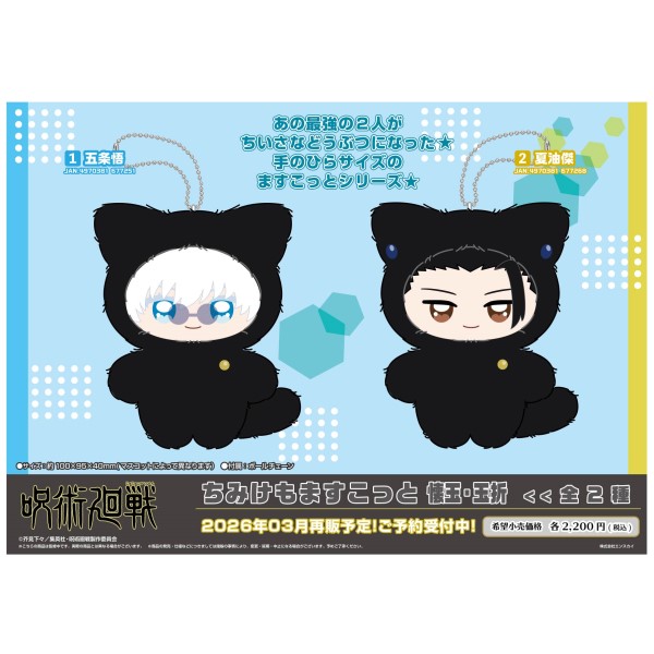 TVアニメ『呪術廻戦』から、ちいさなどうぶつになった、手のひらサイズのマスコットシリーズちみけもますこっと 懐玉・玉折が登場です。