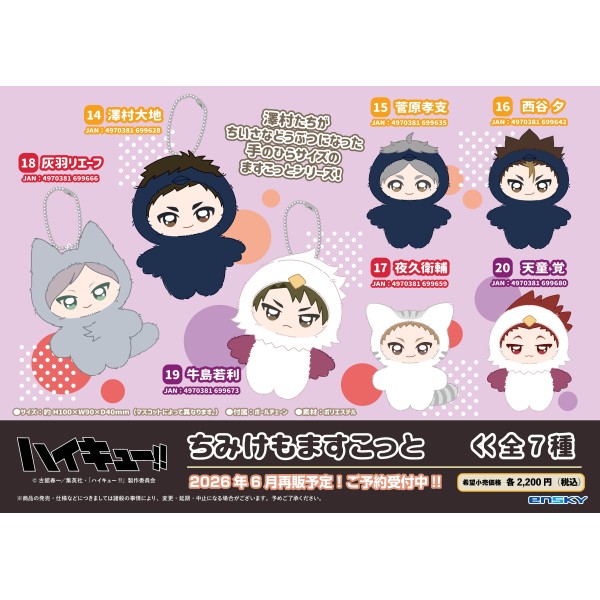 アニメ「ハイキュー!!」から、ちいさなどうぶつになった、手のひらサイズのマスコットシリーズちみけもますこっとが登場です!