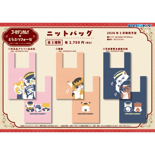 ゴールデンカムイ どうぶつフォーゼ ニットバッグ /(1)杉元&アシリパ&白石